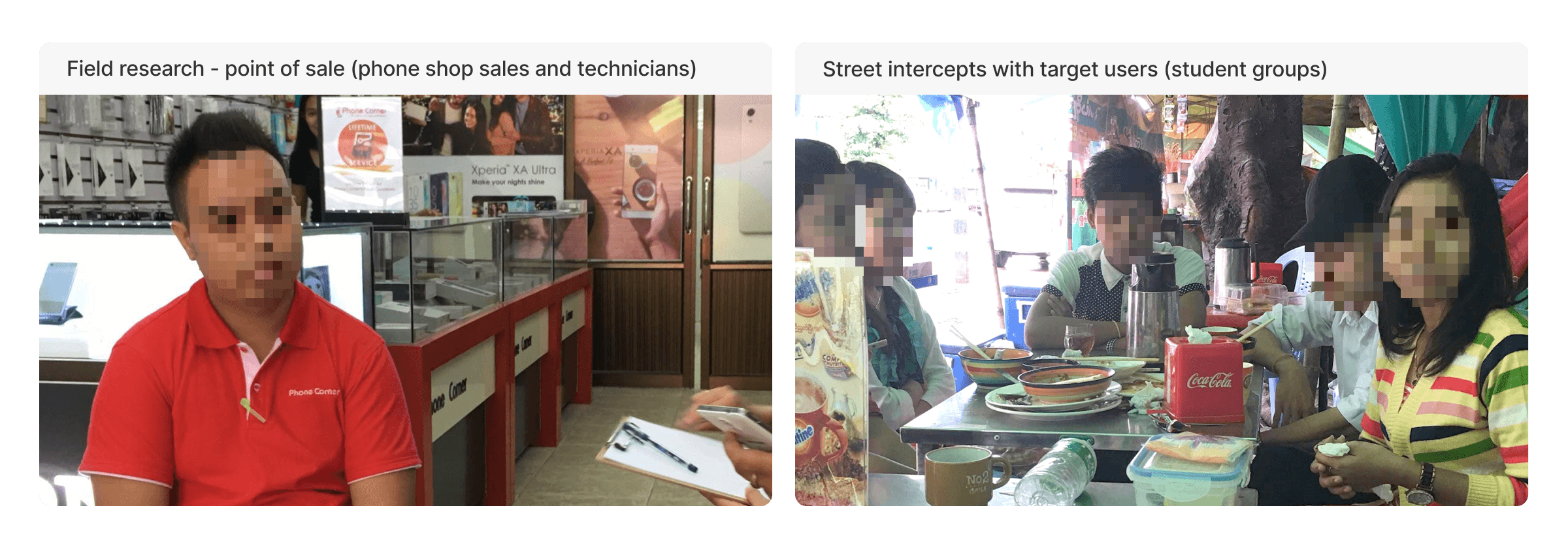 I wrote research plans and scripts, aligned stakeholders across regions, and coordinated with vendors and content partners in Myanmar. Research was executed over 5 days and covered: